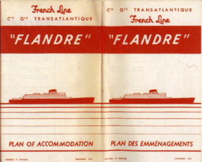 FLANDRE Plaquette américaine pour mise en service du paquebot Plaquette américaine pour mise le voyage inaugural Plaquette version 1 - couverture Edouard Collin Plaquette version 2 - couverture Edouard Collin Plaquette - couverture Marin Marie
