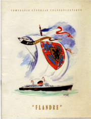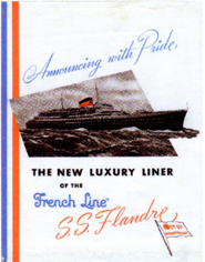 FLANDRE Plaquette américaine pour mise en service du paquebot Plaquette américaine pour mise le voyage inaugural Plaquette version 1 - couverture Edouard Collin Plaquette version 2 - couverture Edouard Collin Plaquette - couverture Marin Marie