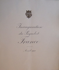 Menu Inauguration "France" avril 1912