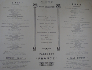 MENUS PAQUEBOT "FRANCE 1912"