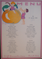Menu pour la présentation aux Etats Unis d'Amérique du nouveau paquebot Normandie