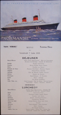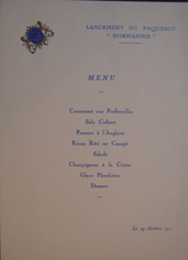 Menu inauguration du paquebot Normandie daté du 24 mai 1935 |