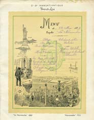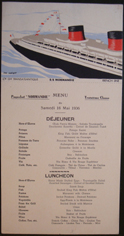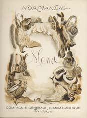 Série menus "vieux vaisseaux" avec le nom de S/S Normandie inscrit