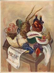 Série menus illustrés par J. Duché créés pour Normandie et réutilisés après guerre