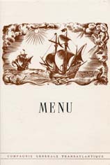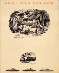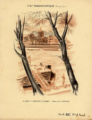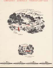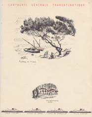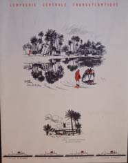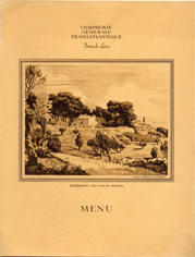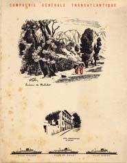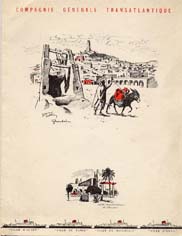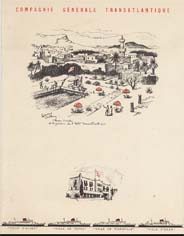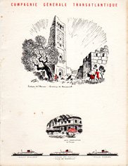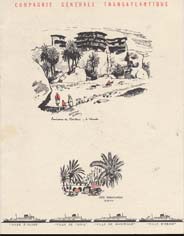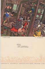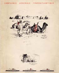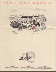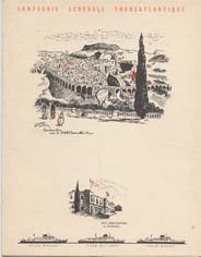Série menus "Afrique du Nord " par Edouard Collin (2 variantes dans cette série : 3 ou 4 paquebots sont représentés en bas de menu)
