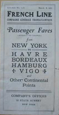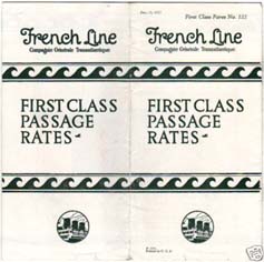 Ligne Le Havre New York Ligne de la Havane & Vera Cruz 1924 Cabin rates 1924 Second cabin fares 1930 First Class Passage Rates 1921 First Class Passage Rates 1928 Différentes brochures / diferents booklets
